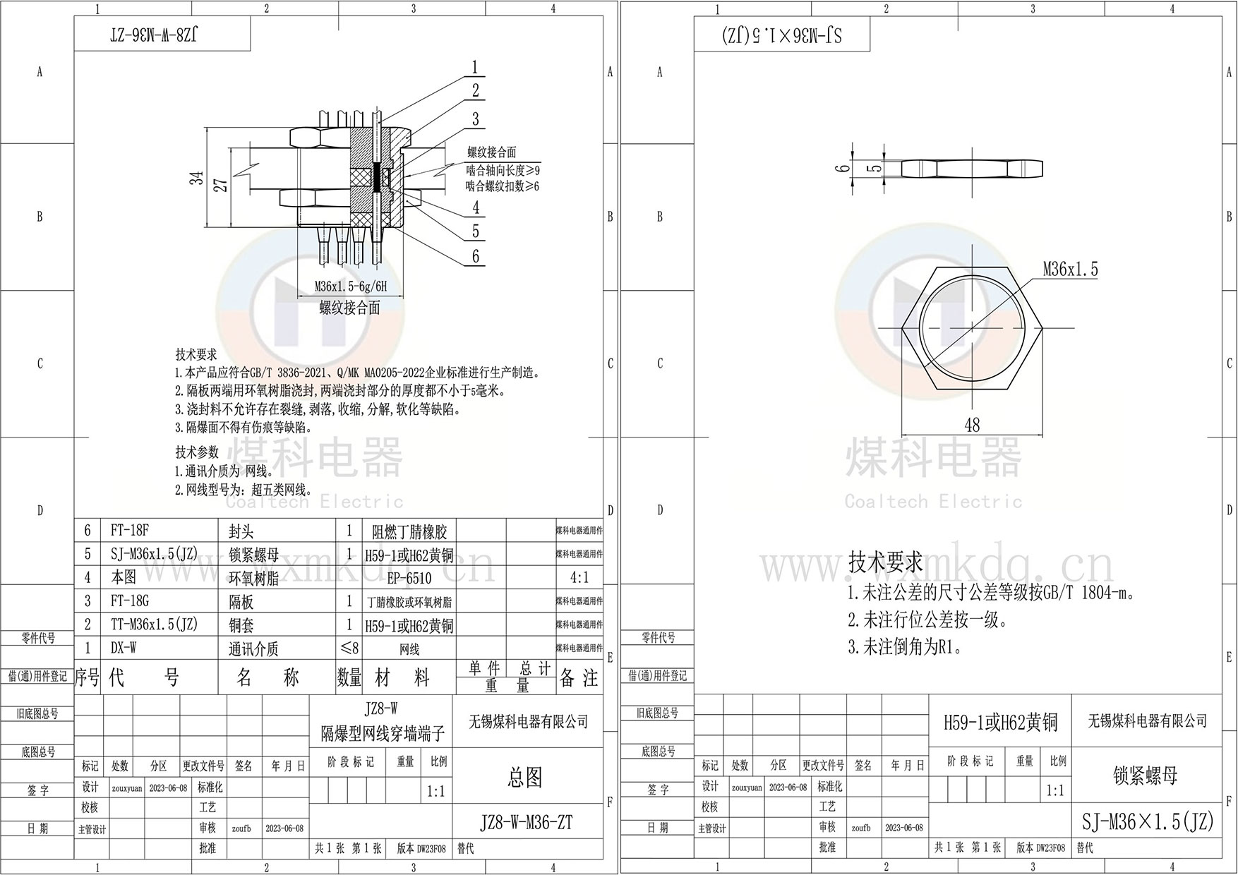 (1)隔爆面安装铜套;(2)芯数;(3)网线规格以及是否需要水晶头;(4)上端(法兰侧)预留多长;(5)下端(锁紧螺母侧)预留多长。