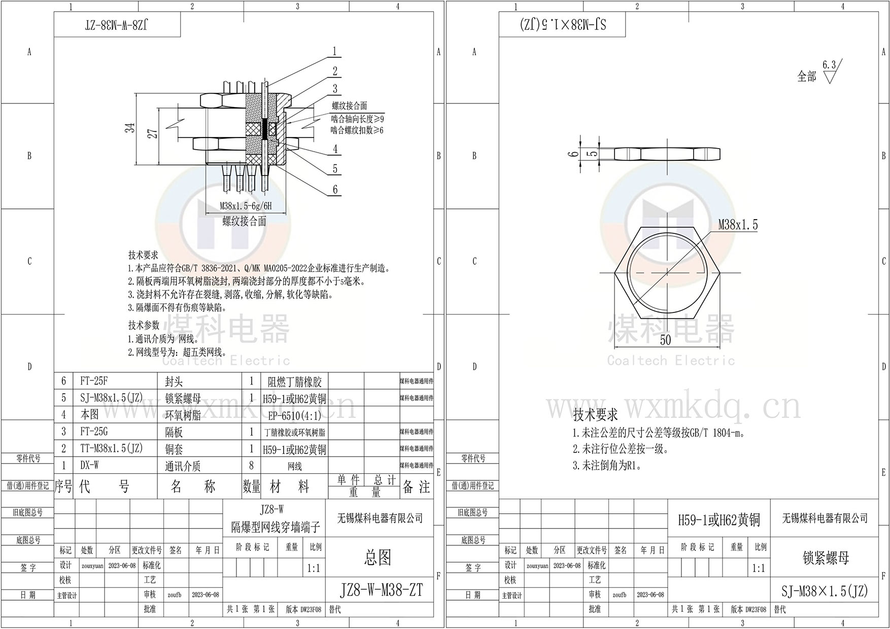 (1)隔爆面安装铜套;(2)芯数;(3)网线规格以及是否需要水晶头;(4)上端(法兰侧)预留多长;(5)下端(锁紧螺母侧)预留多长。