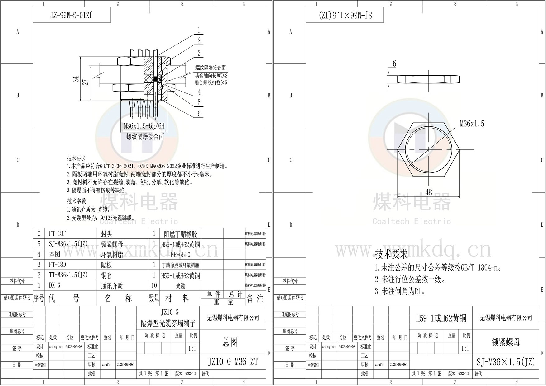 (1)隔爆面安装铜套;(2)芯数;(3)光纤及接头规格;(4)上端(法兰侧)预留多长;(5)下端(锁紧螺母侧)预留多长。
